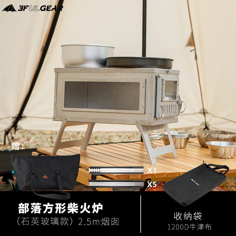 Three peaks outdoor firewood stove picnic picnic camping multi-functional folding autumn and winter tent heating pyramid tent stove