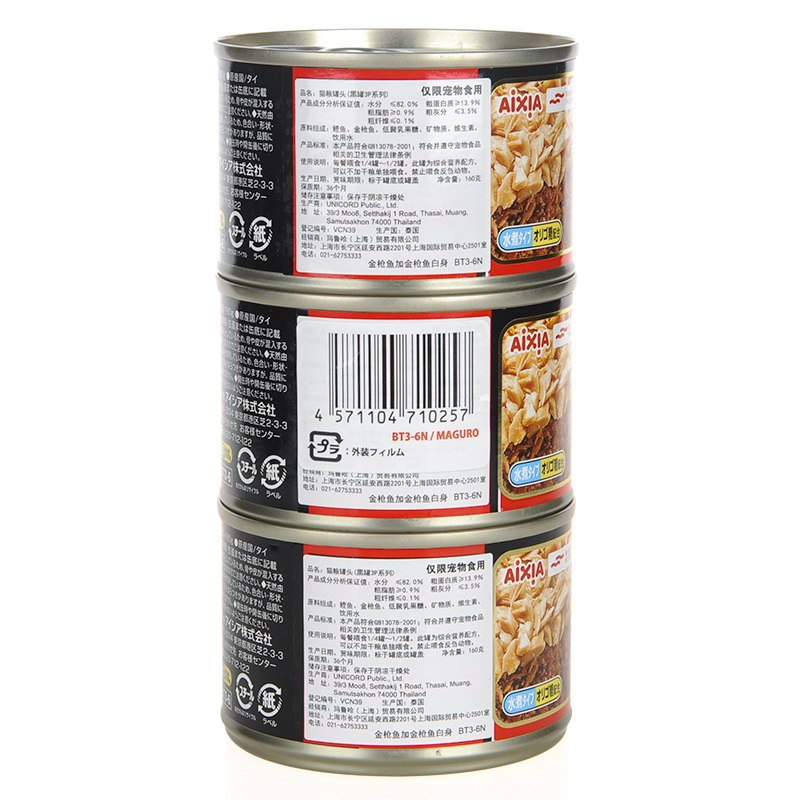 aixia black cat staple food cans 160g*3 cat wet food snacks Aixiya imported nutrition hair gills cans