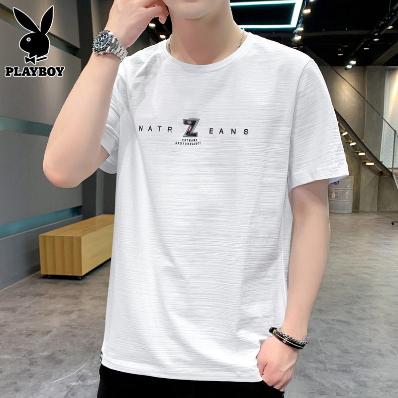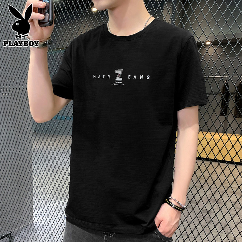 Playboy ice silk short-sleeved t-shirt men's summer cotton tide brand trend all-match top clothes T-shirt summer clothes