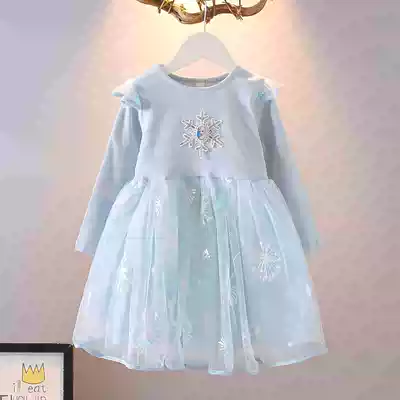 Y766 Princess big snowflake dress-blue Y766 Princess big snowflake dress-pink Y766 Princess plus velvet big snowflake dress-blue Y766 Princess plus velvet big snowflake dress-pink