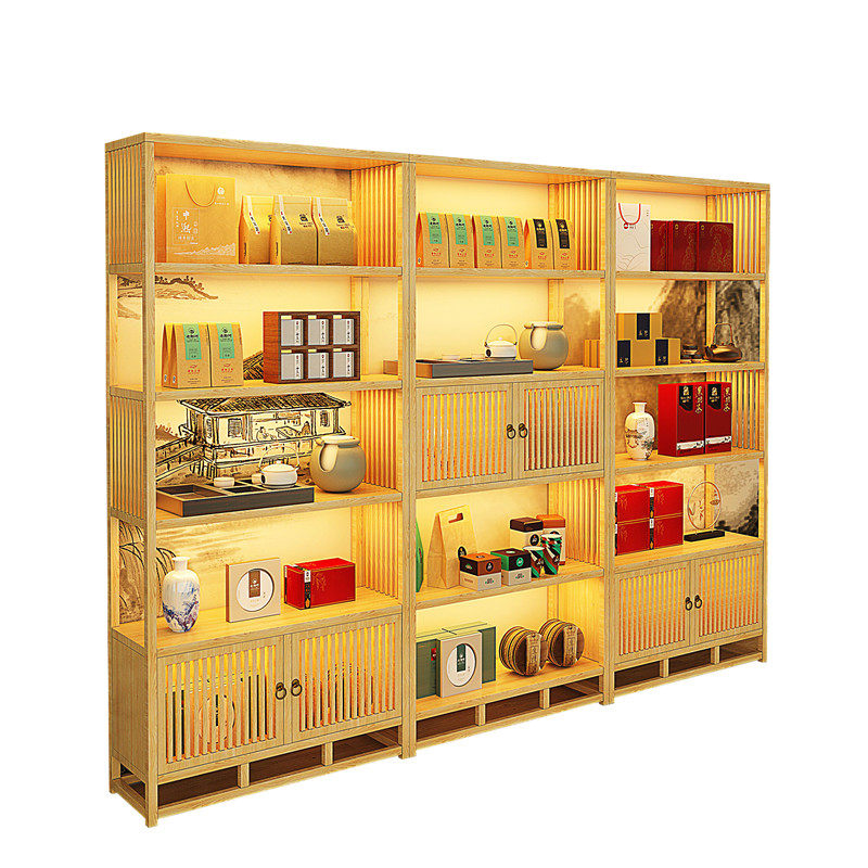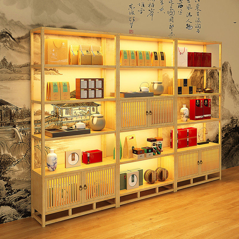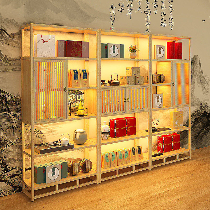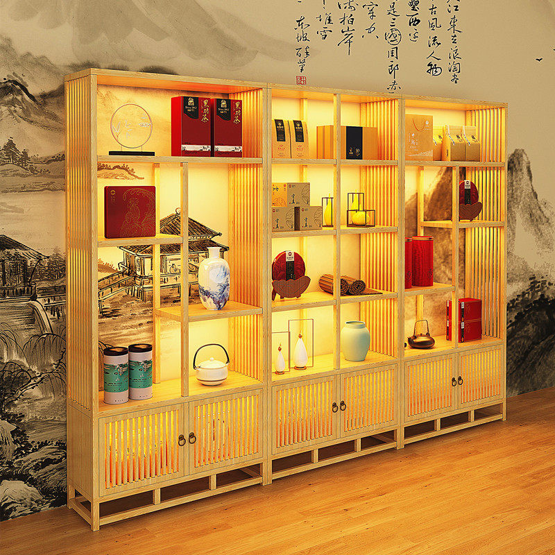 Tea Display Cabinet Solid Wood Retro Bou Ancient Rack Antique Exhibition Cabinet Straight Sowing Room Background Cabinet Tea Room Cabinet Net Red Show Shelf
