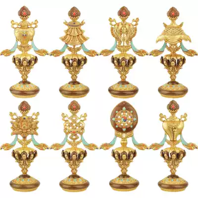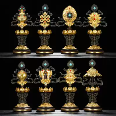 Pure copper eight auspicious ornaments small pure copper eight auspicious ornaments medium pure copper eight auspicious ornaments large pure copper red sandalwood base eight auspicious ornaments