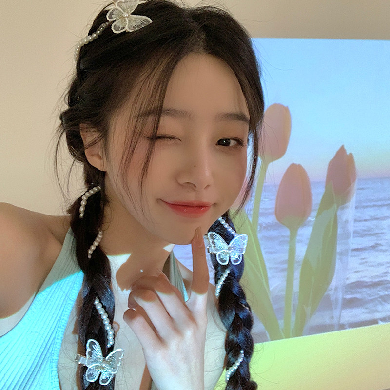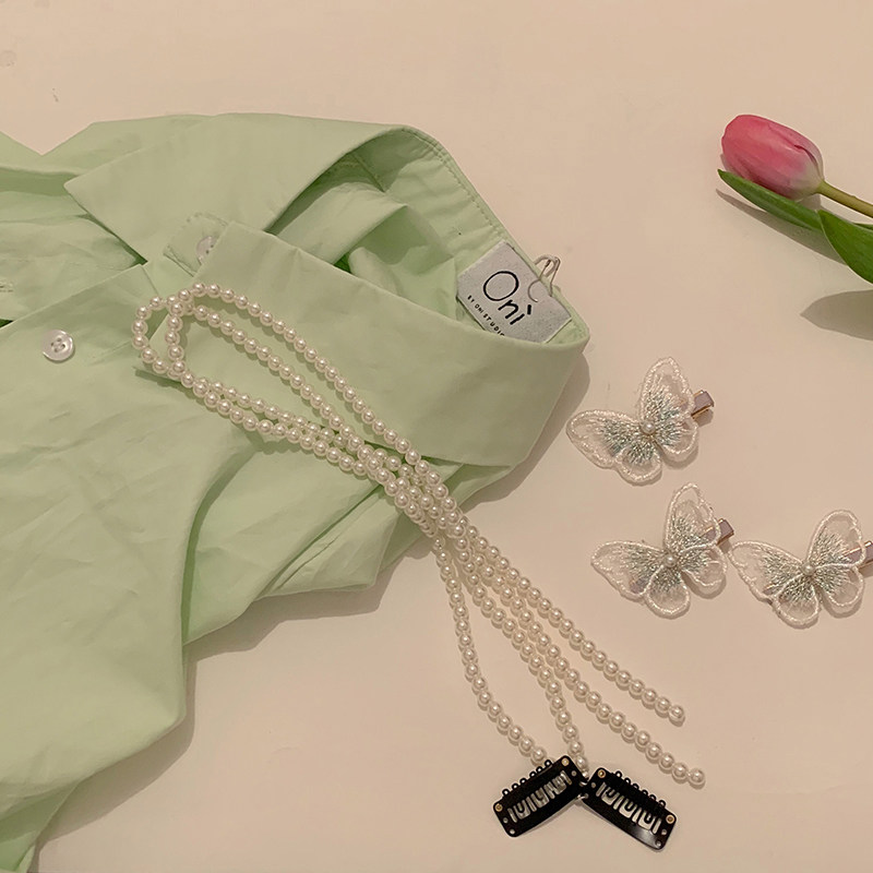 Sengas Butterfly Hair Clip 1 Pearl Hair Chain Short Section 1 Bar 30cm Pearl Hair Chain Long Version 1 Bar 50cm Pearl Long Version Hair Chain 2 Butterfly Hair Clip 3
