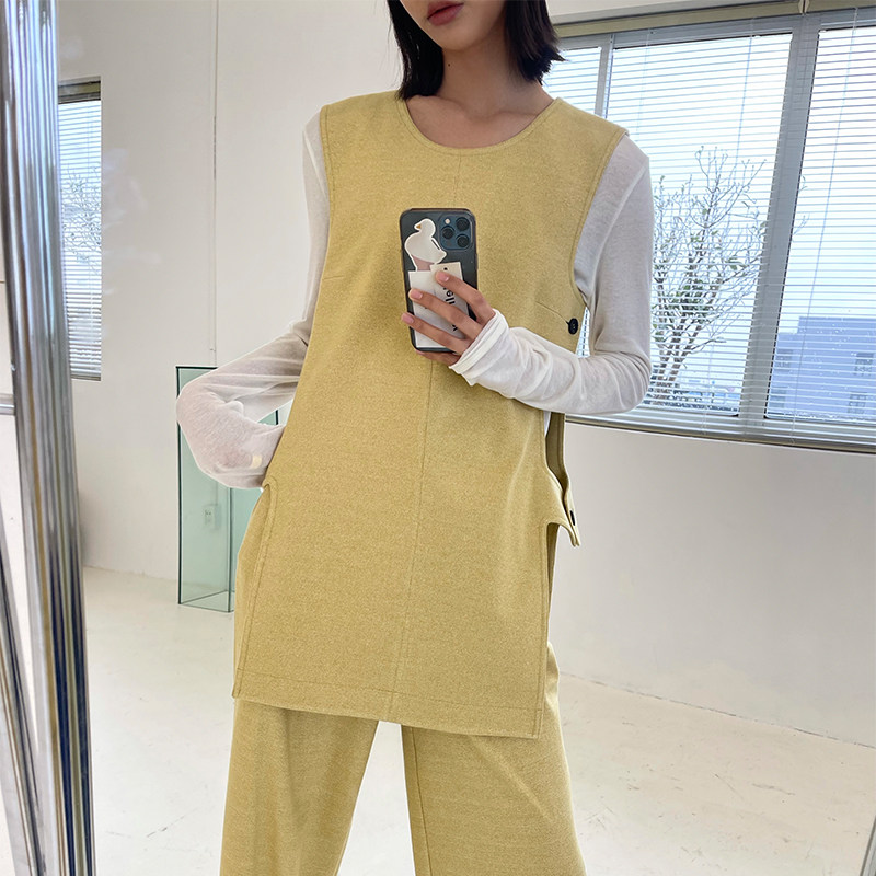 Cassava color vest Spot 3 days hair tapioca color trousers Spot 3 days hair