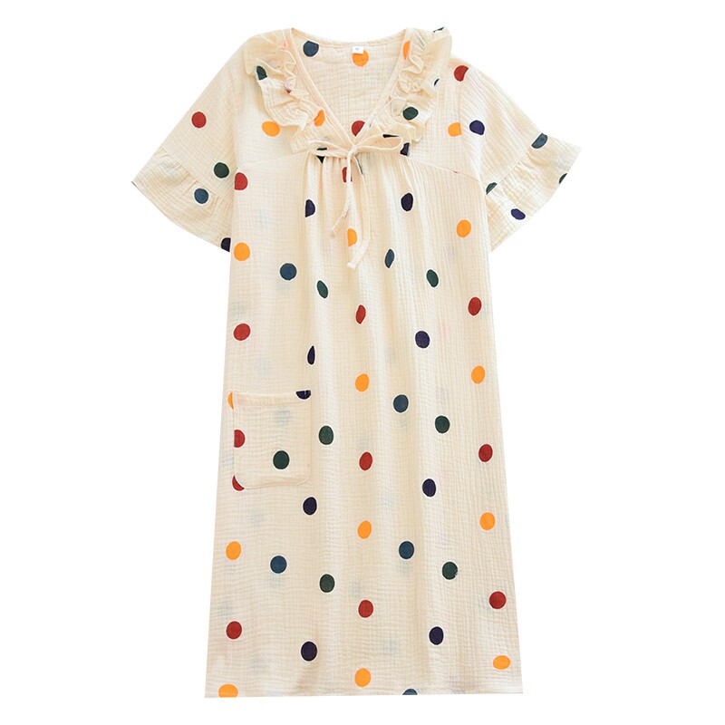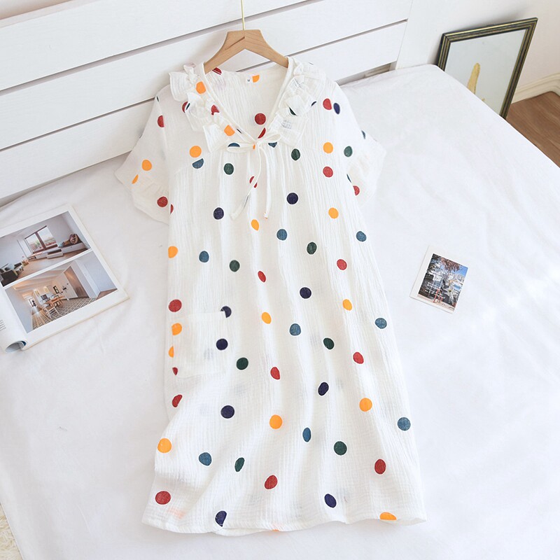 Nightdress women's summer thin cotton double gauze cotton crepe short sleeve cute princess style doll collar home skirt