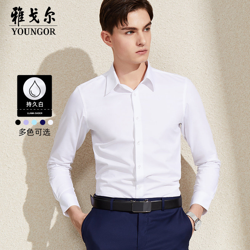 (No hot and easy to manage) Youngor Ole clearance spring business casual white long sleeve shirt men
