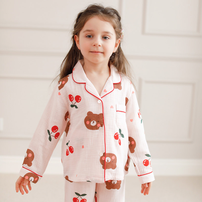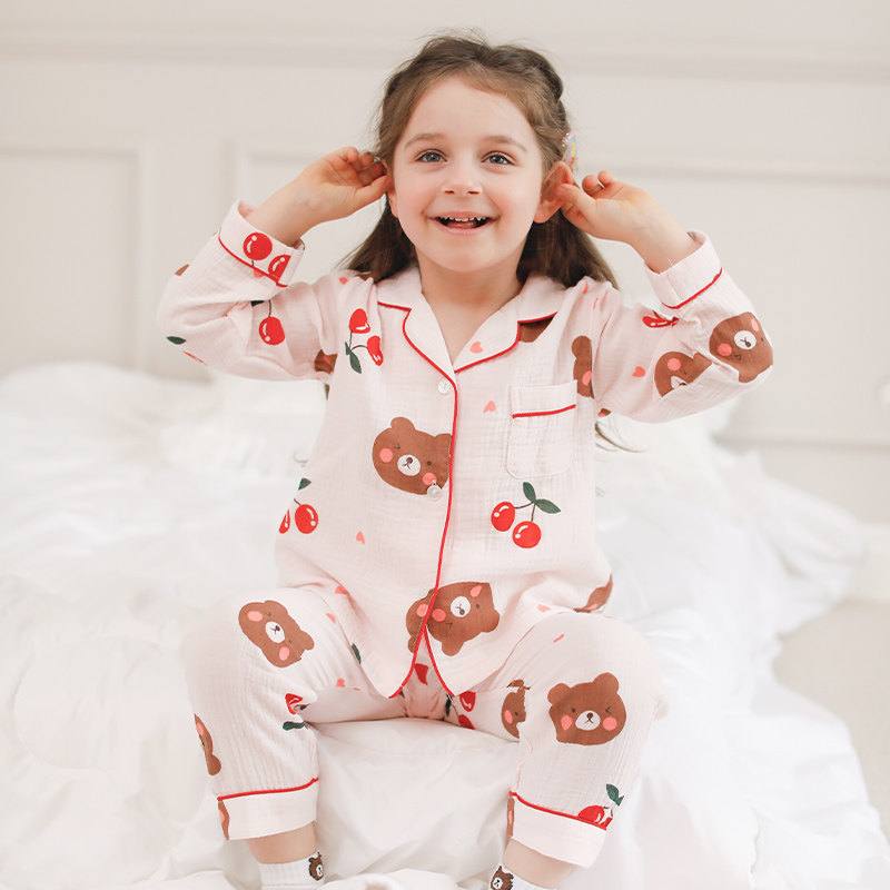 Children's Pyjamas Summer Thin Girl Air Conditioning Suit Girl Child Spring Autumn Pure Cotton Baby Boy Home Residence Suit Suit
