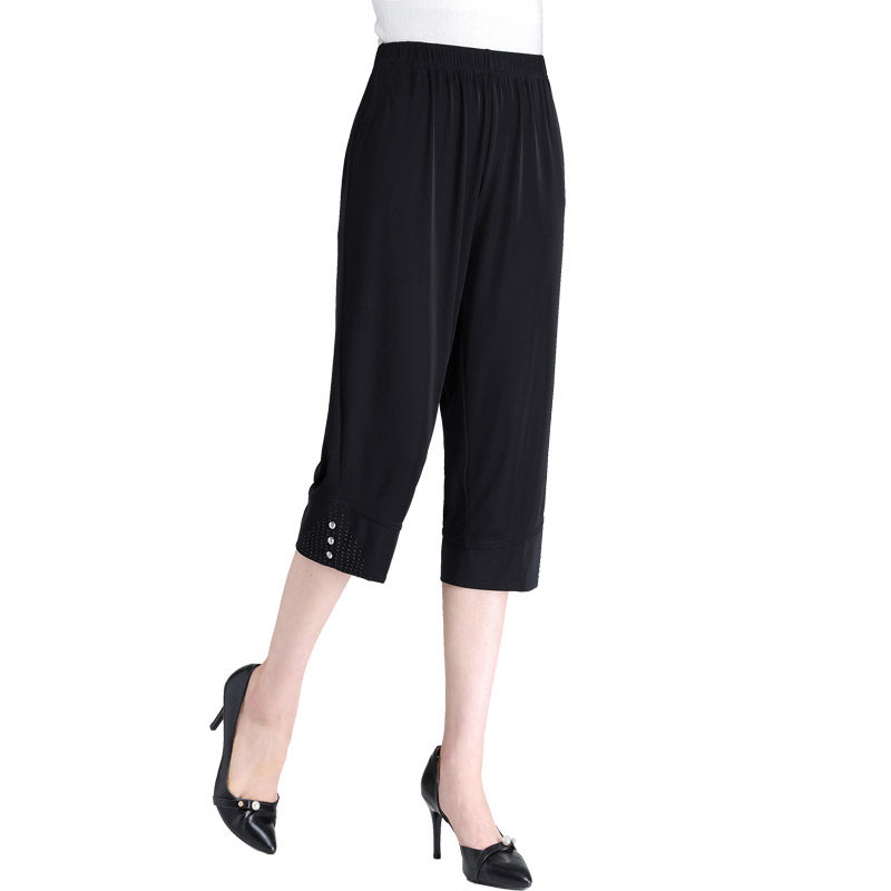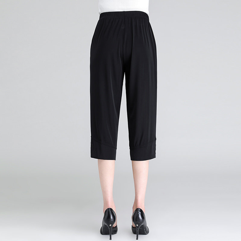 Ice silk mother pants cropped pants elderly pants loose middle-aged and elderly women's pants summer thin section grandma pants large size old lady pants