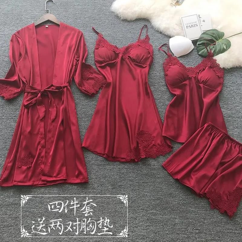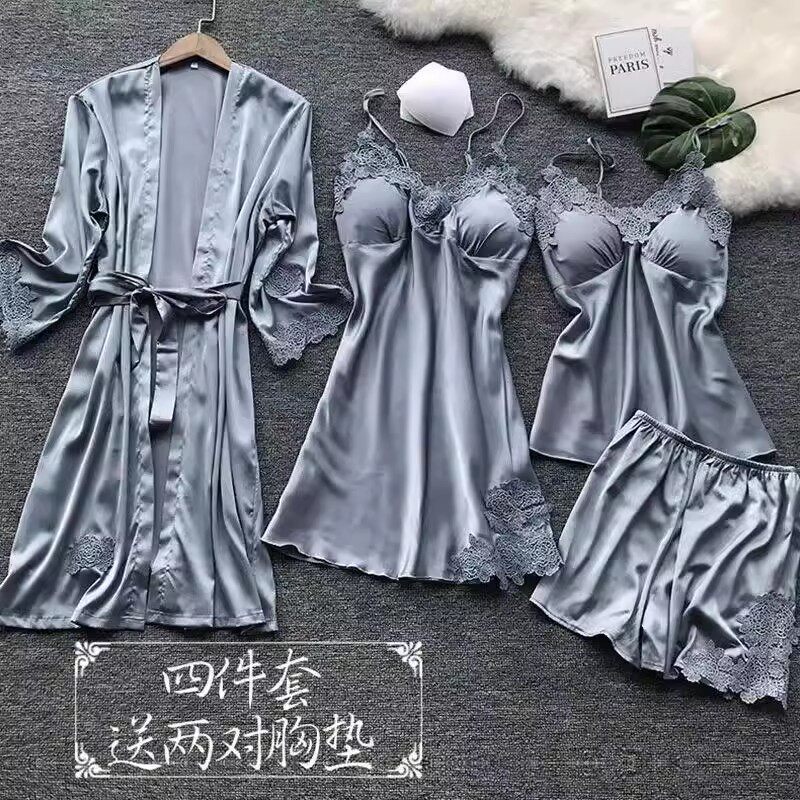Pink four piece set (send two pairs of chest pads) Champagne four pieces (send two pairs of chest pads) Gray blue four pieces (send two pairs of chest mats) wine red four pieces (send two pairs of chest mats) hide blue four sets (send two