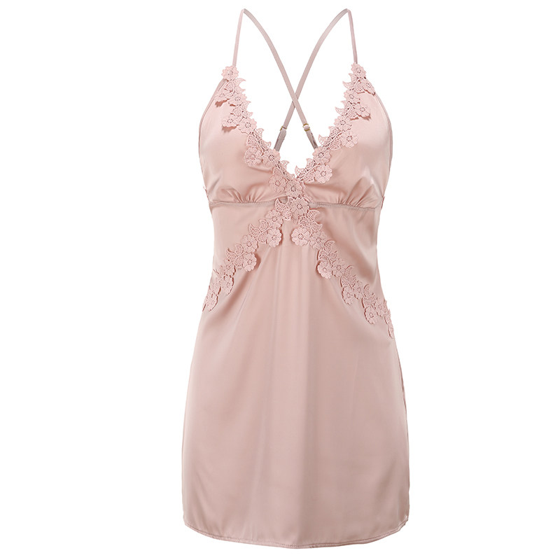 Aya Ling said sexy pajamas ladies summer small breasts deep V temptation ice silk sexy suspenders nightdress net red pure desire wind