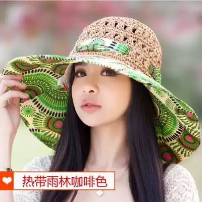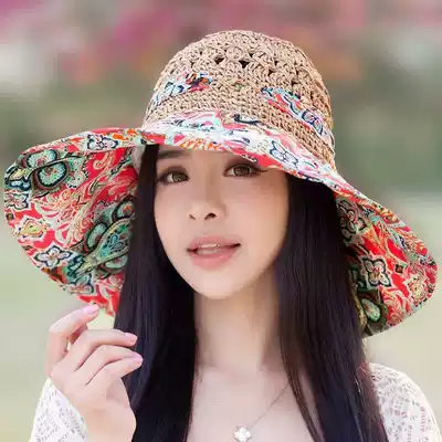 Female summer Korean straw hat big edge cool hat Hollow Beach hat big brim hat foldable Sun Hat sun hat