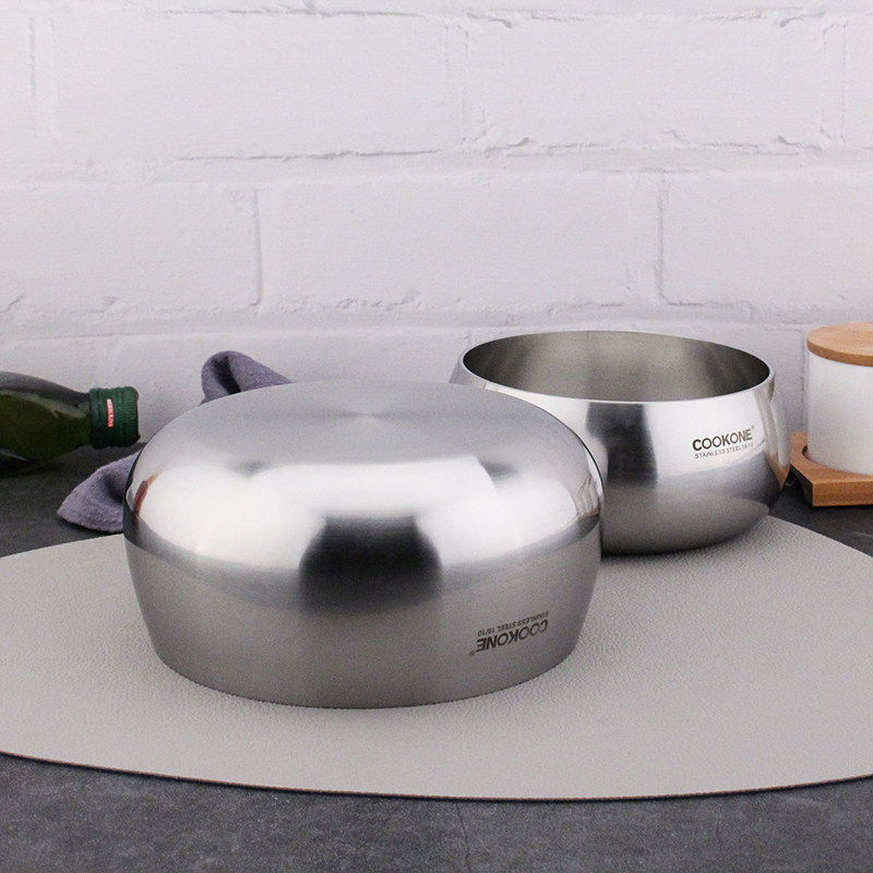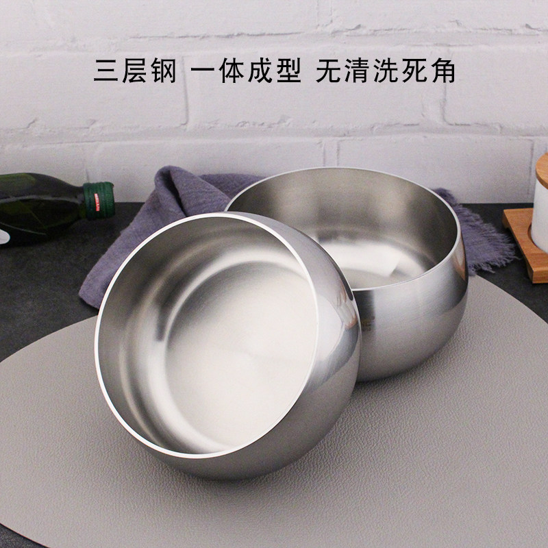 304 stainless steel eating bowl soup bowl thickened three-layer steel noodle salad bowl can be heated cold noodle bowl steel vegetarian rice bowl