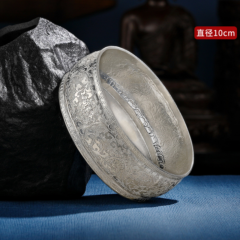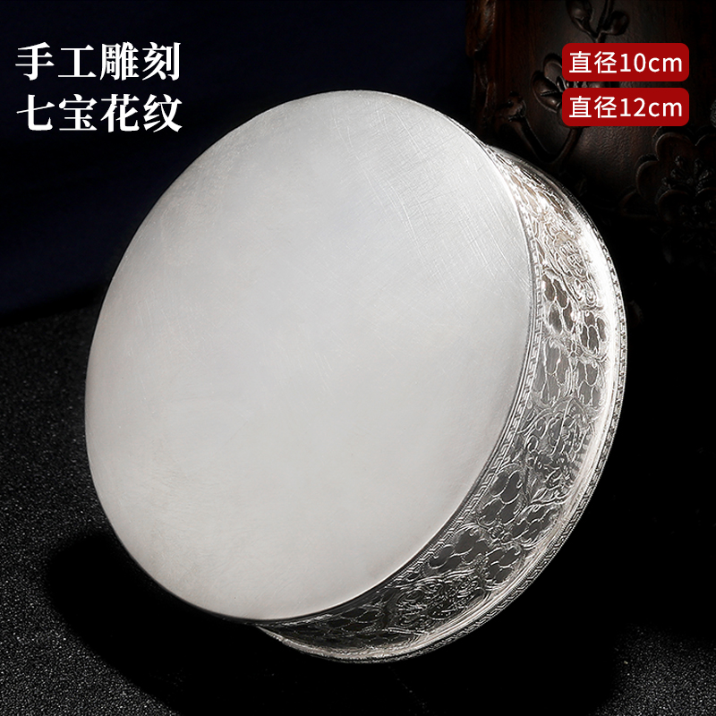 s990 sterling silver Manza plate repair plate Repair tea Luo eight auspicious handmade plain pattern flat flower Tibetan Tantric sterling silver repair plate