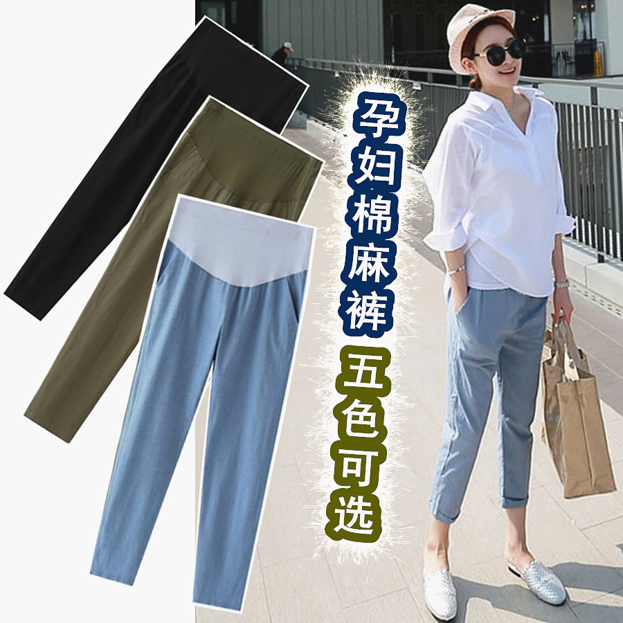 Maternity pants pants spring summer thin leggings summer outside wear cropped pants summer loose cotton hemp cropped pants summer wear