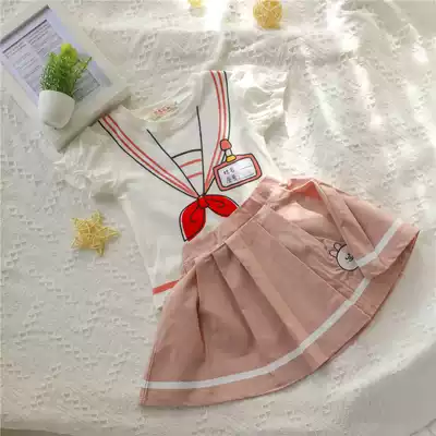 80-90 yards clearance girl suit summer 2021 New Kindergarten dress college style short sleeve T-shirt skirt