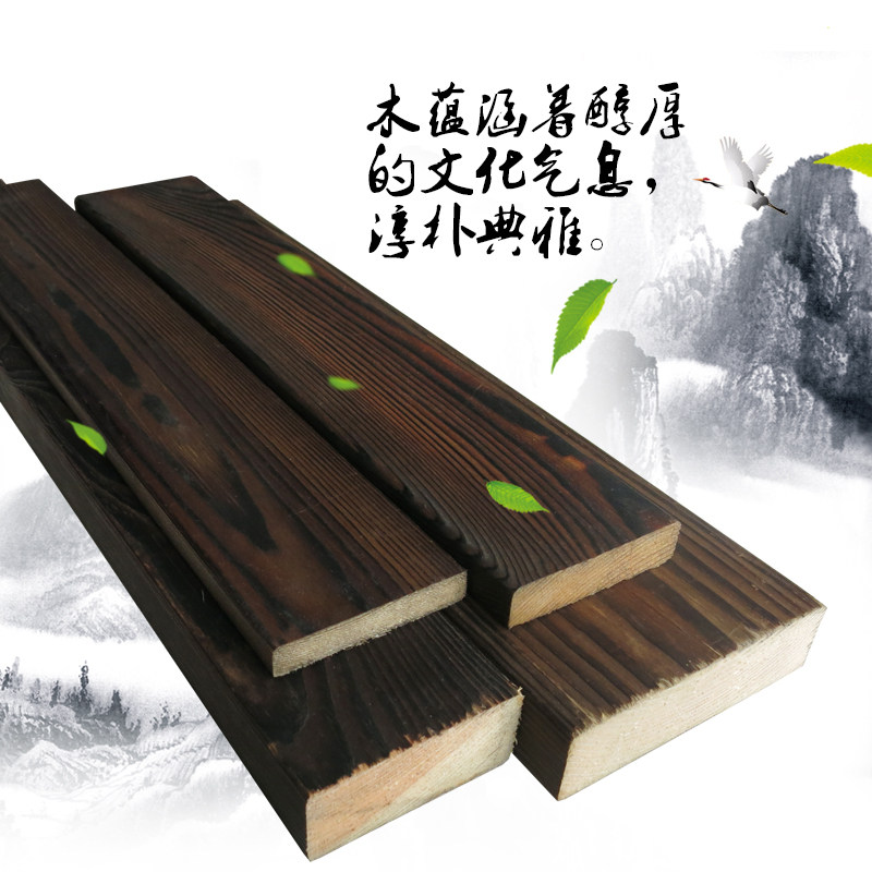 Carbonized wood Anti-corrosion wood Garden Outdoor wood floor Balcony Solid wood wood square wood bar Charcoal burning board Floor planks