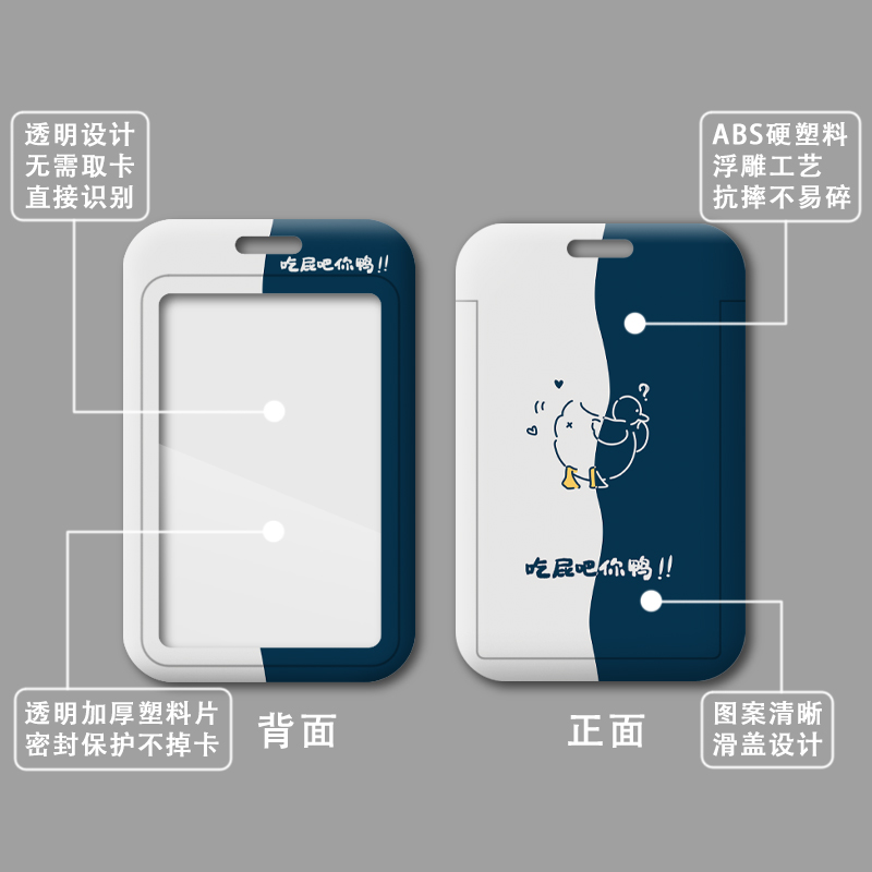 Duck doesn't have to be cartoon cute student campus card set meal card bus canteen water card subway access control card set with lanyard hanging neck badge Yangchengtong work permit factory card protective cover customization