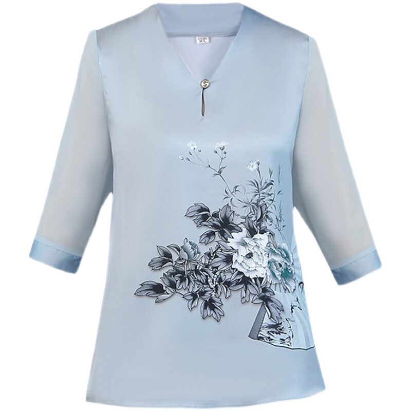 Middle-aged mother summer dress short-sleeved 2021 new silk top clothes 40 years old 50 middle-aged and elderly women's two-piece suit
