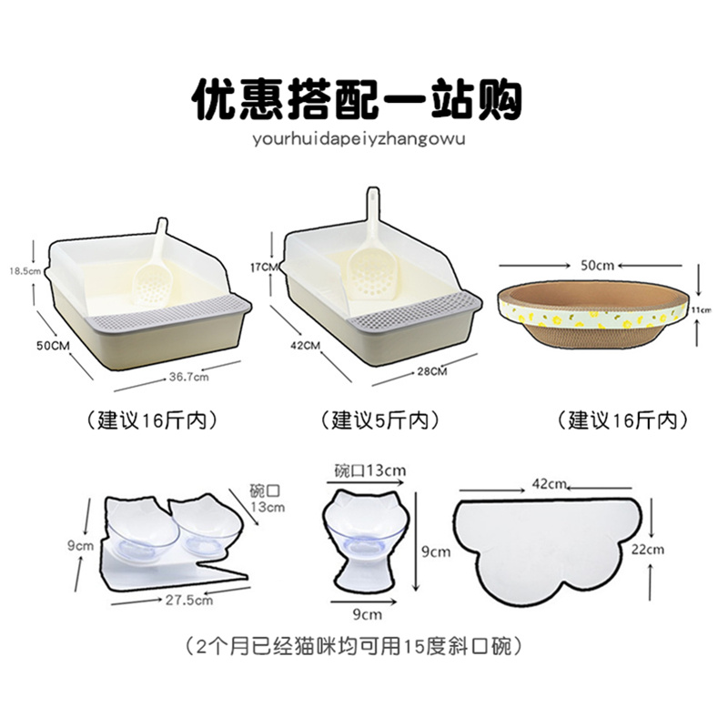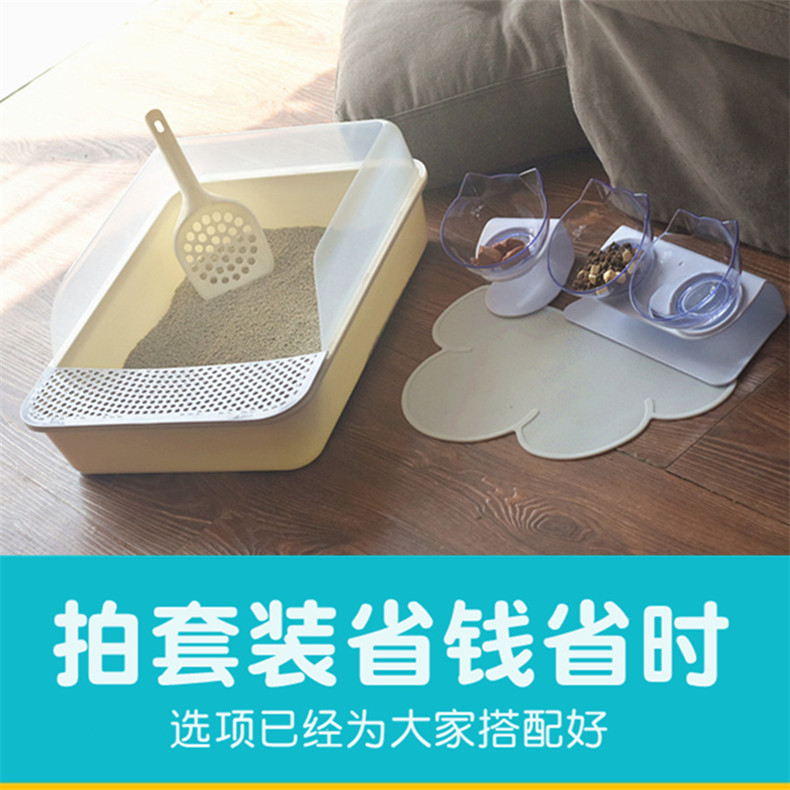 Large cat litter box (within 16 jin) (cat litter shovel when you place an order) large (15 degree oblique mouth double bowl) large (15 degree double bowl) (cloud placemat) large (double bowl) (cat)
