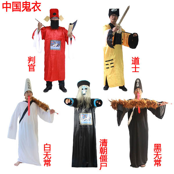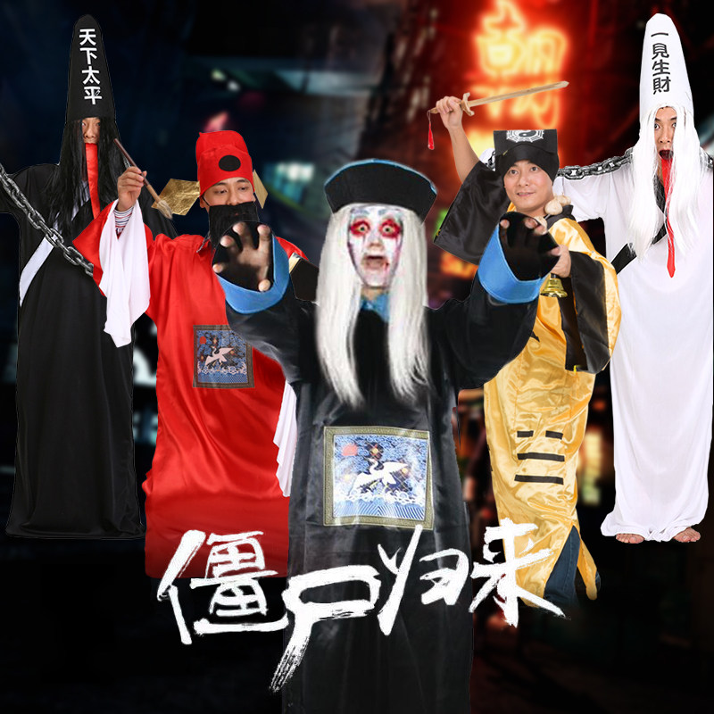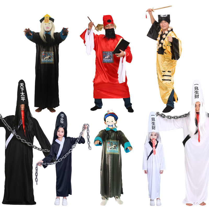 Halloween adult costume adult cos clothing Qing Dynasty official uniform horror zombie black and white impermanent clothes dress up ghost clothes