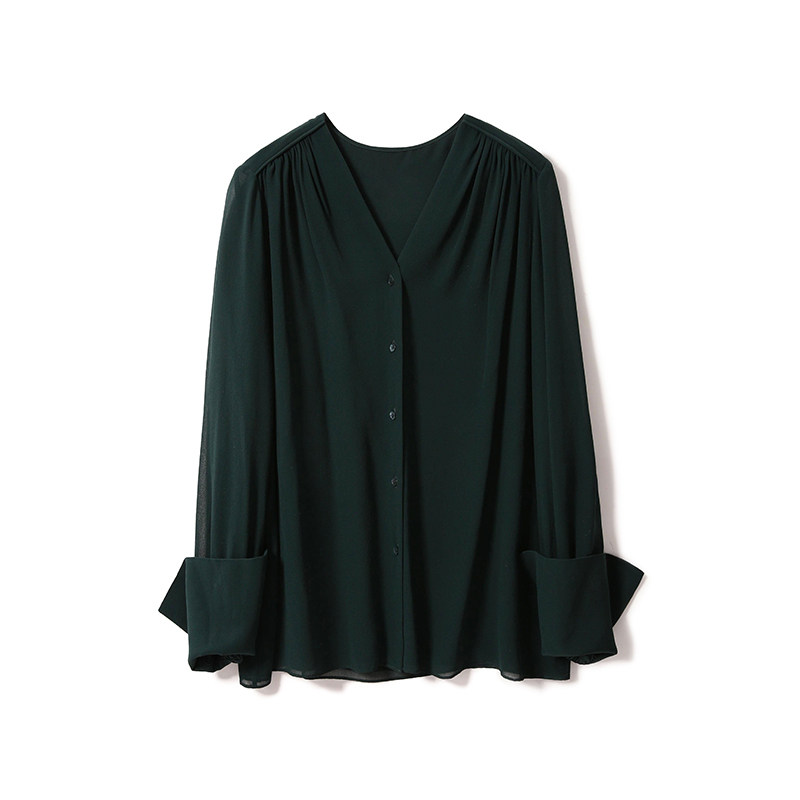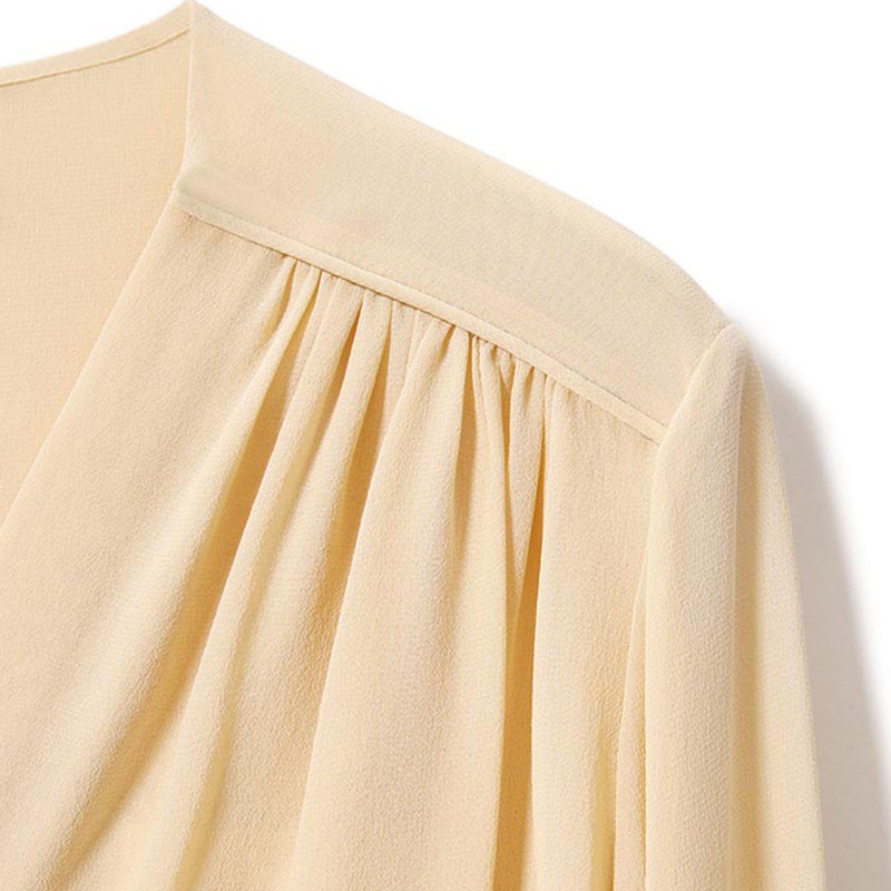 Rong mei (CY1216110) minimalist everyday double layer 6A silk shoulder ruffle shirt top