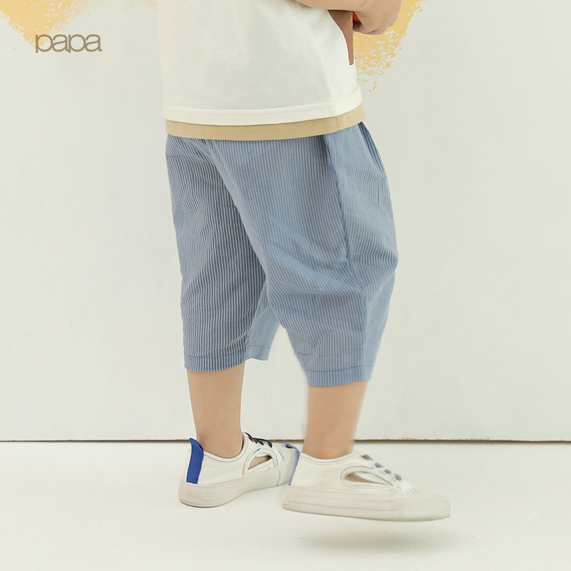 papa crawling with summer-thin children cotton linen 90% pants male and female children's baby streaks out for casual pants 0-5 years old