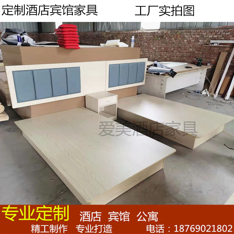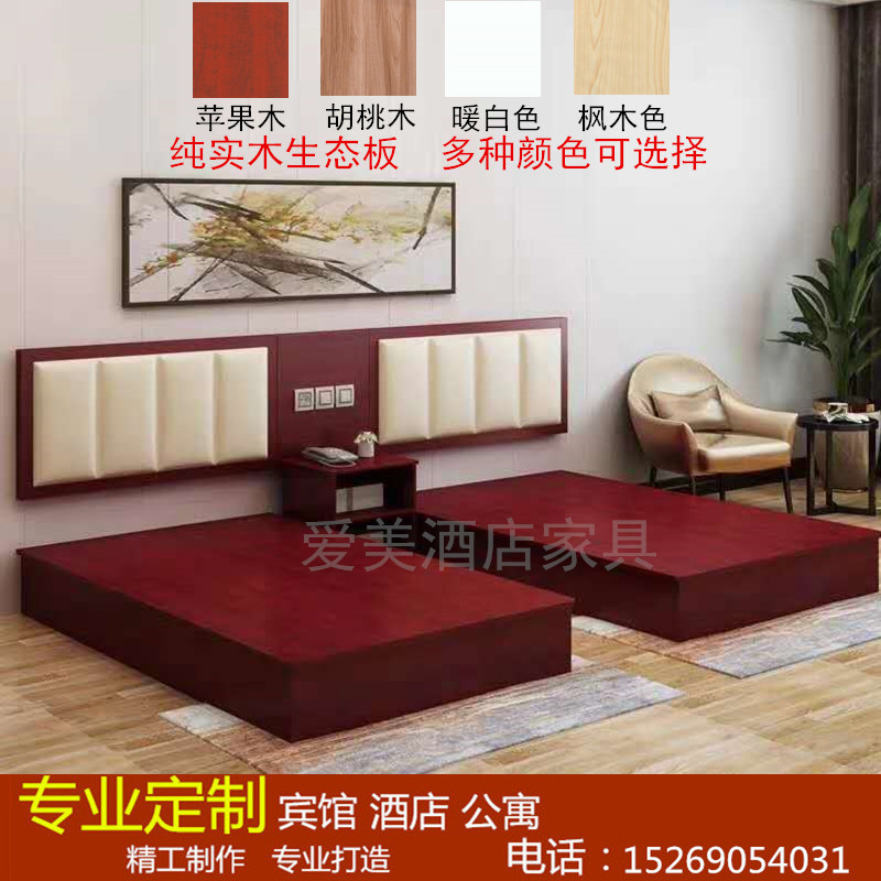 Customized Solid Wood Eco-boardHotel Furniture Bed Standard Room Soft Backed Apartment Queen Room