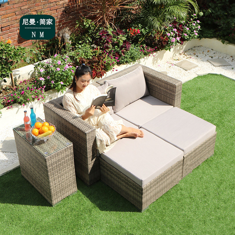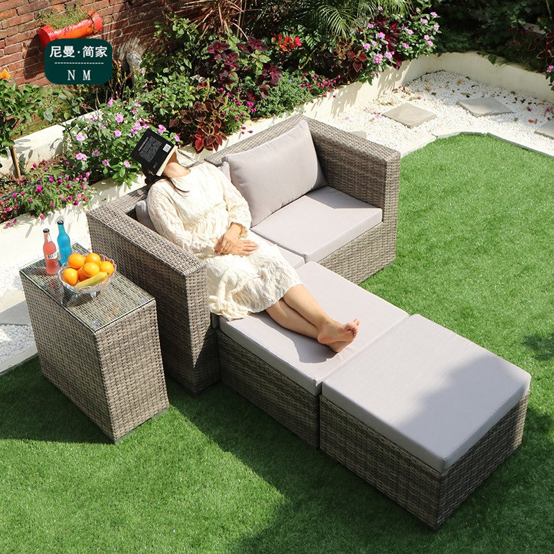 Outdoor rattan sofa combination rattan chair three-person sofa living room single outdoor terrace balcony courtyard leisure sofa