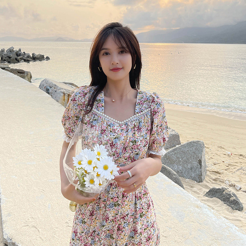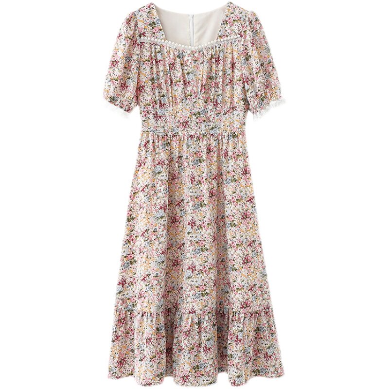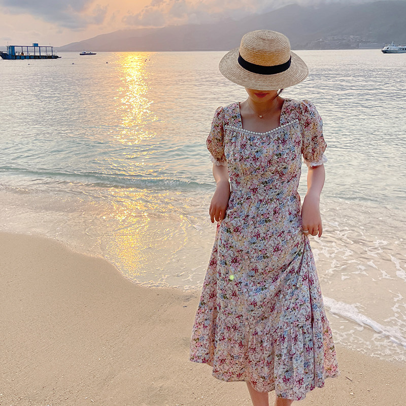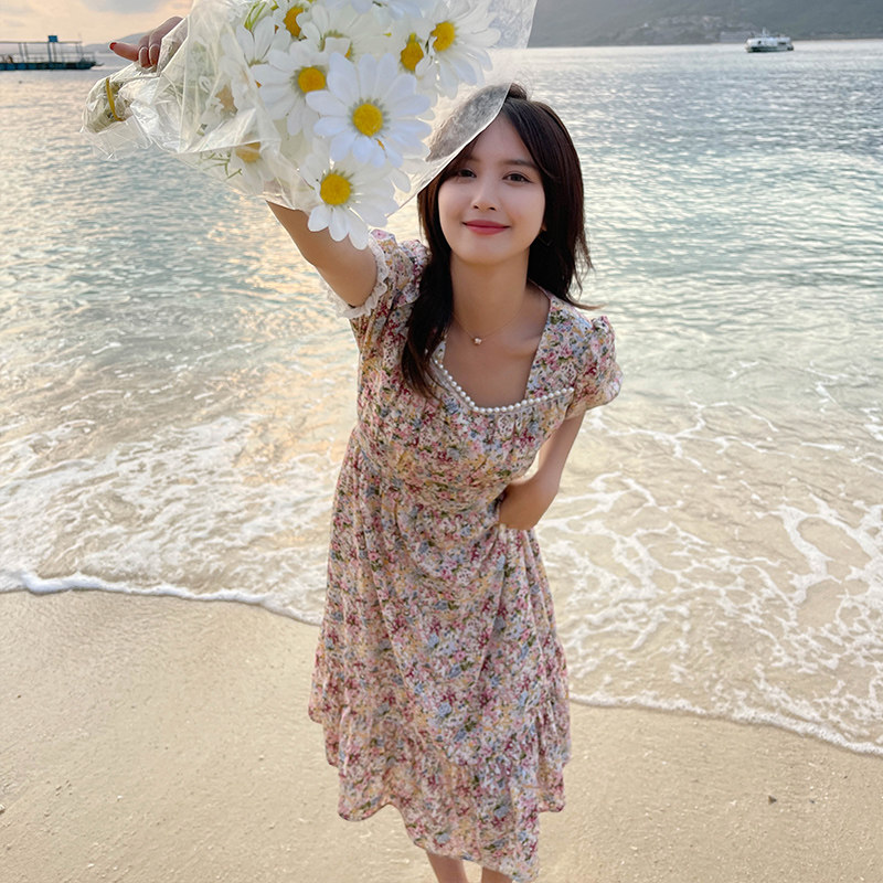 Large size women's clothing in the summer of 2021 the new fat sister covers the belly to show thin temperament age reduction floral pearl dress