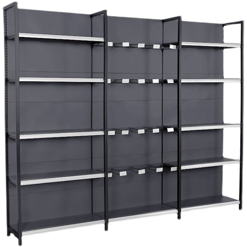 Four column gray supermarket shelves convenience store snack stationery pharmacies mother and baby port multi-layer shelves