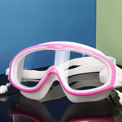 Swimming goggles women transparent flat adult men HD waterproof anti-fog frame wide angle pink swimming glasses adjustable