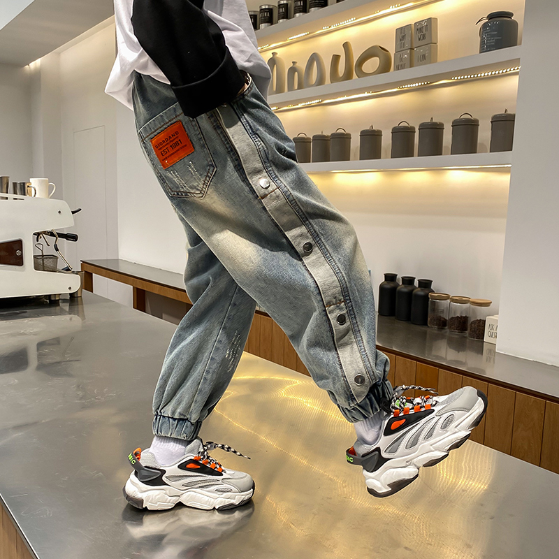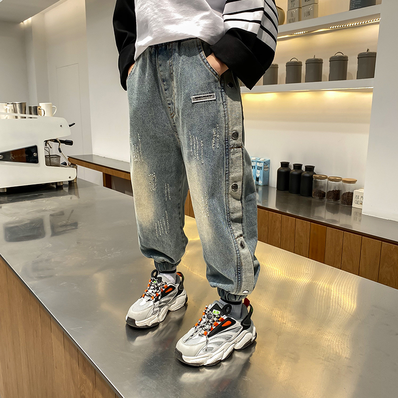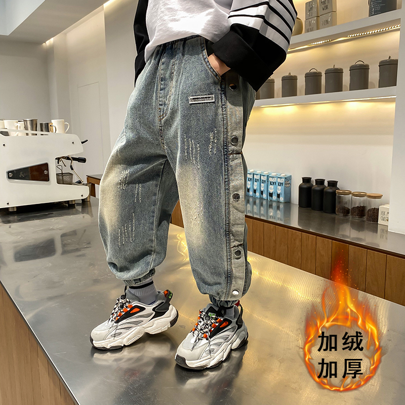 Boys' jeans plus velvet thickening autumn and winter children's pants 2021 new big boy boy handsome spring and autumn pants tide