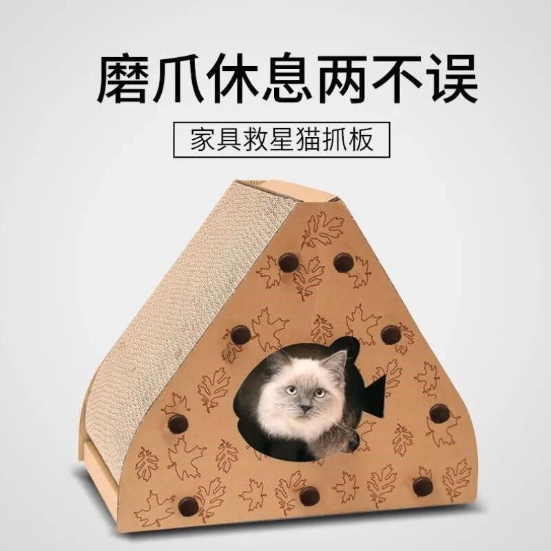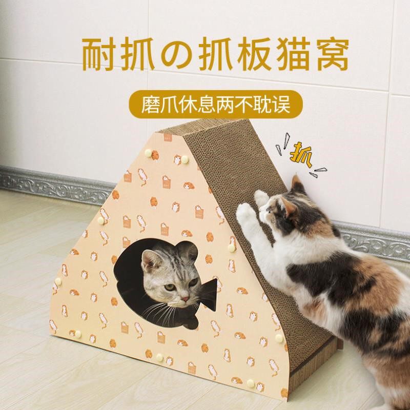 (New Arrival) Triangle Cat House Cat Scratch Board Claw Grinder Corrugated Paper Cat Litter Wear-resistant Large Cat Supplies