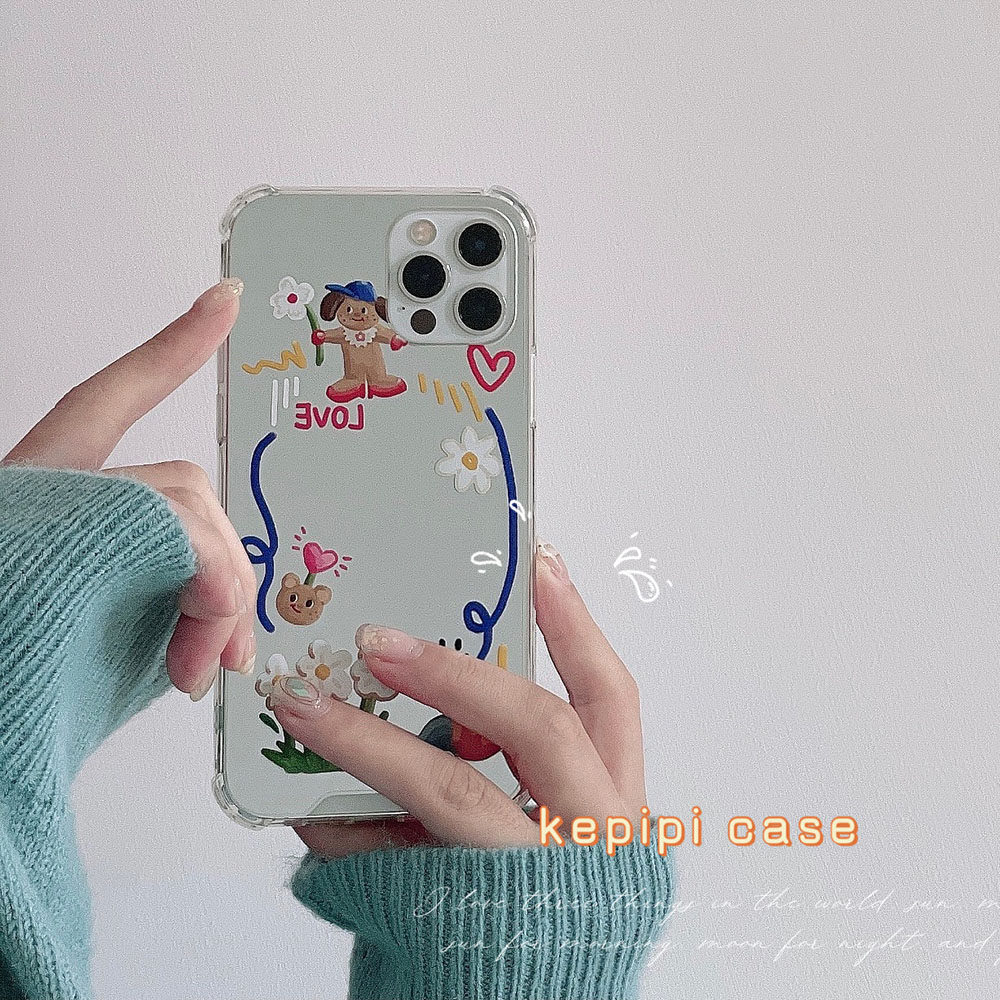 Japan-ROK Ins Cute Cartoon Little Bear Mirror Applies X Apple 13 Phone Protection Shell iPhone12promax Little Girl