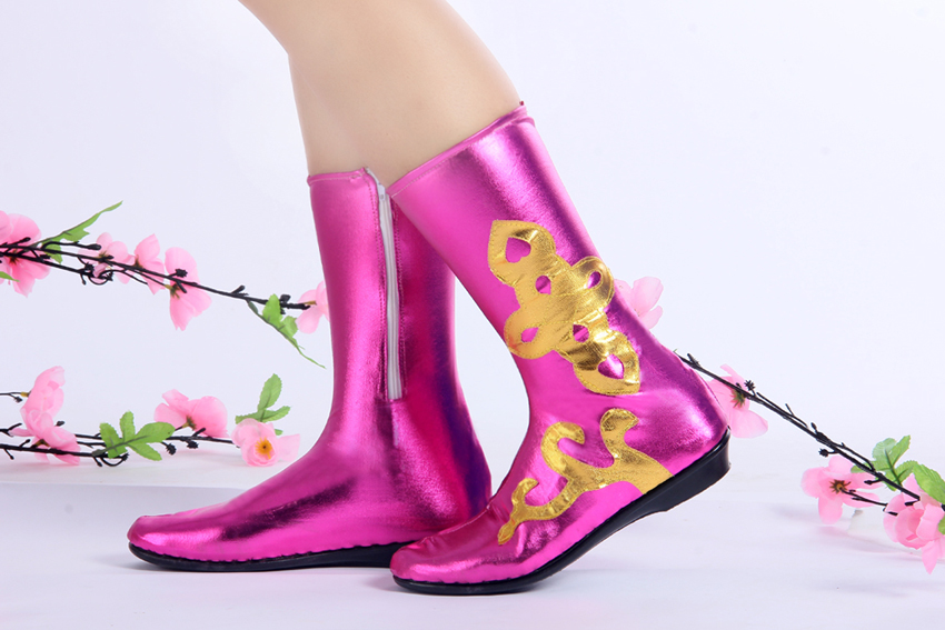 Tibetan performance boots ethnic Mongolian boots men's and women's black and white red elastic high tube square catwalk dance boots