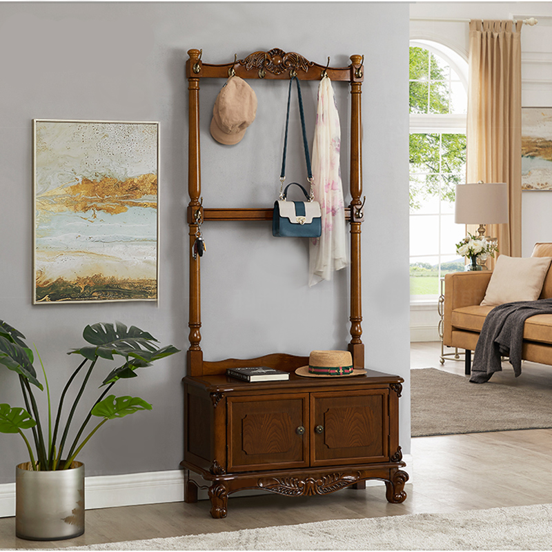 American solid wood clothes hat rack door hall changing shoes and stool shoes cabinet door-to-shoe clothes hanger Euro-style integrated household clothes hangers