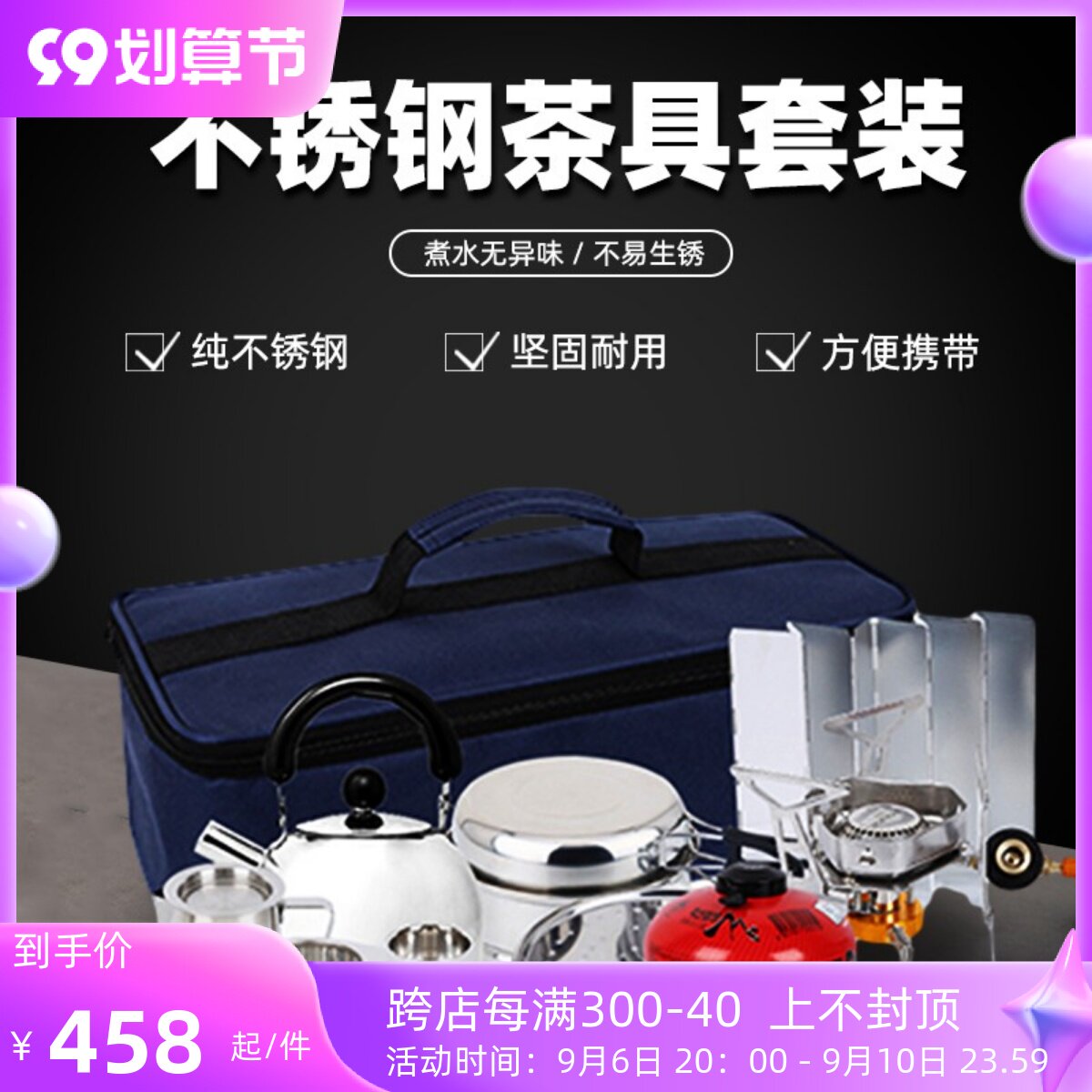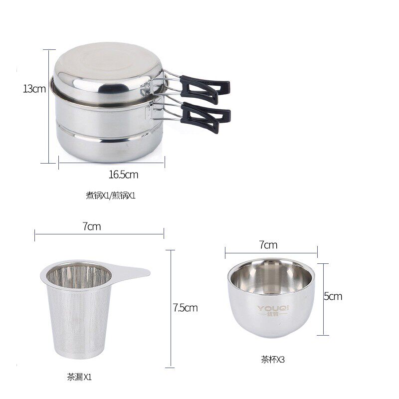 Youqi Outdoor Tea Set Portable Tea Maker Travel Burning Tea Camping Kung Fu Tea Set Stainless Steel Camping Set