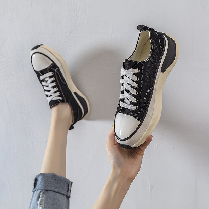 European station thick-soled canvas shoes women's new summer thin section ulzzang all-match waffle white shoes ins street style trendy shoes