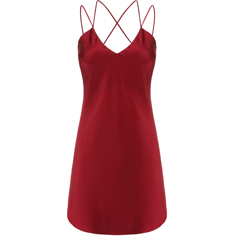 Upper small floor Sexy pyjamas female summer ice careless machine slim down back seductive red Nehitch short skirt Sling Sleeping Dress