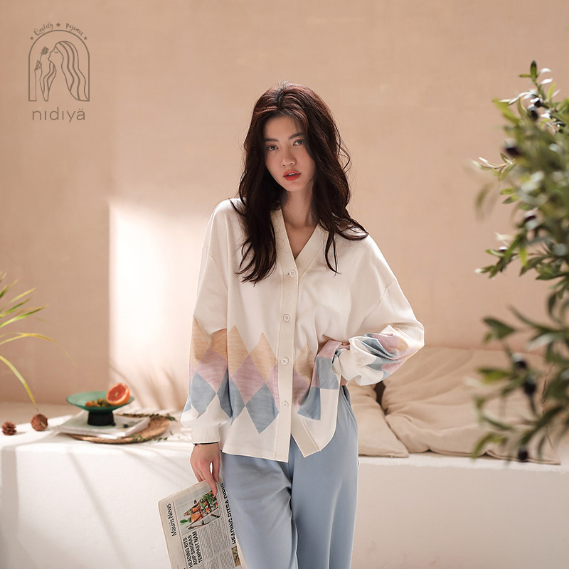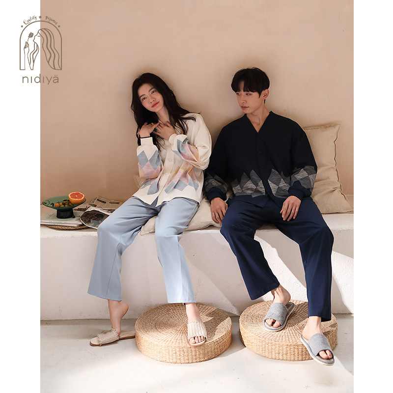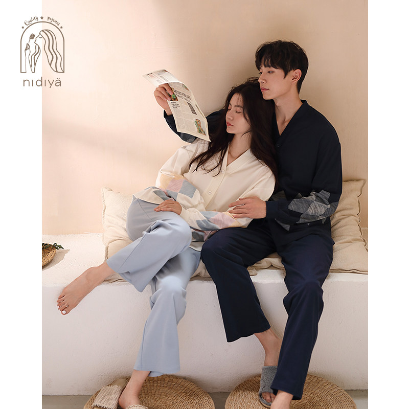 Nedia New Lovers Pyjamas women's spring and autumn clothes pure cotton long sleeve men's minimalist open-shirt autumn home suits suit-Taobao