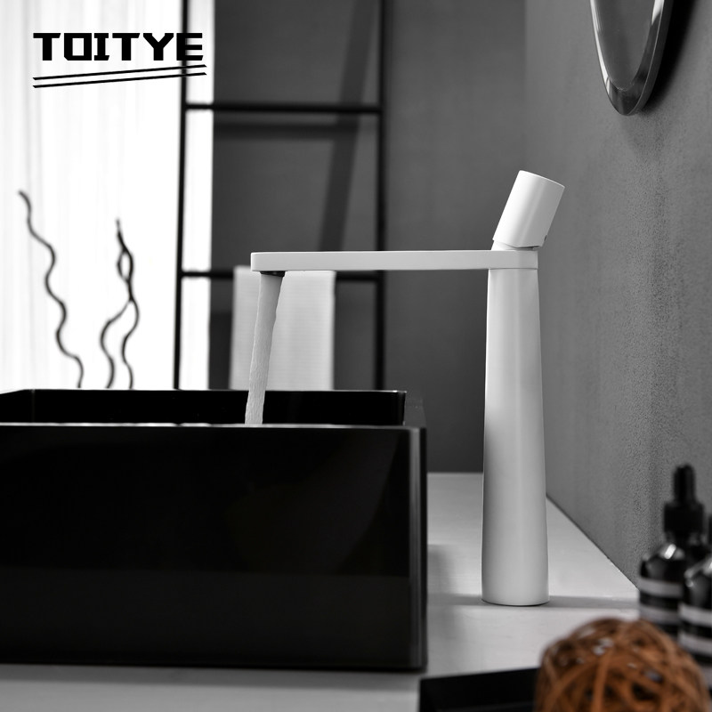 Japan's Dongyi white heightened table basin hot and cold water faucet bathroom powder room full copper black washbasin faucet