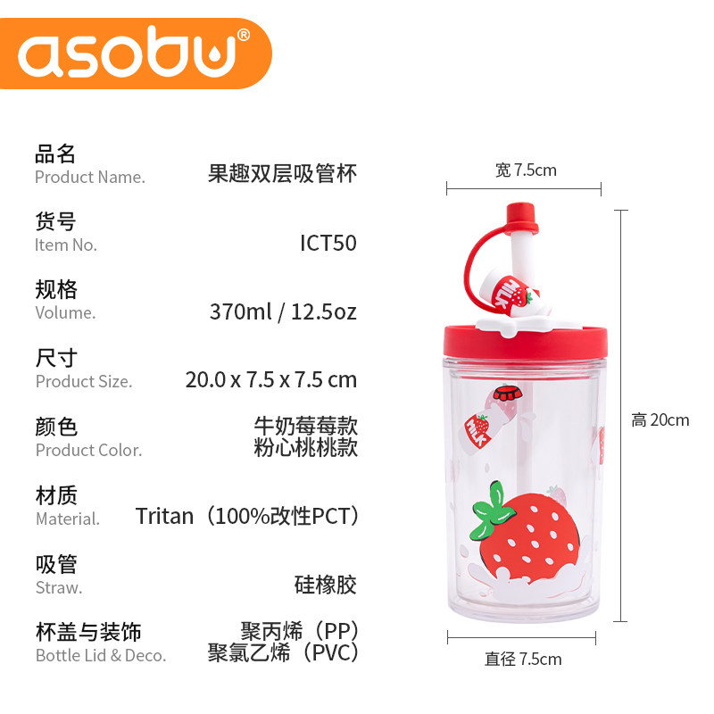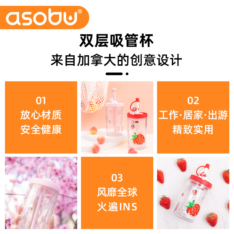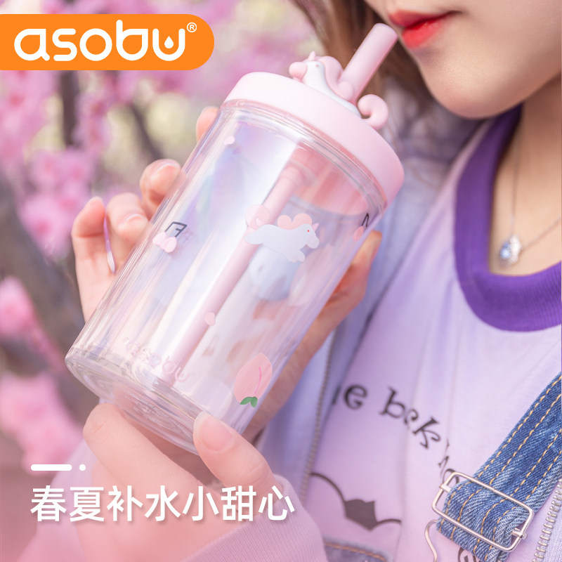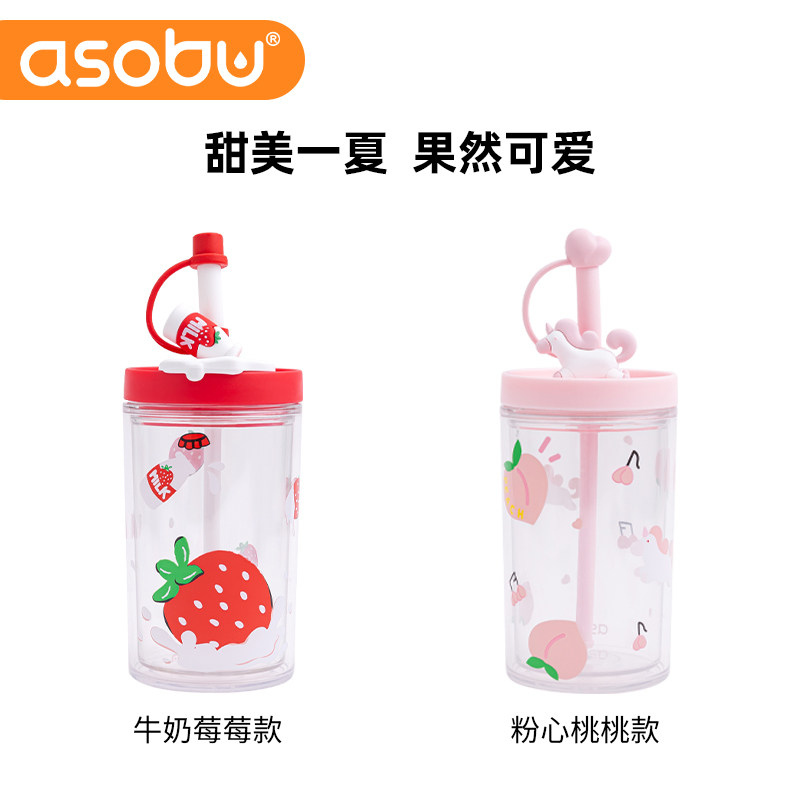 ASOBU Le Poof straw cup female cute child tirtan large capacity water cup Double insulation drop summer