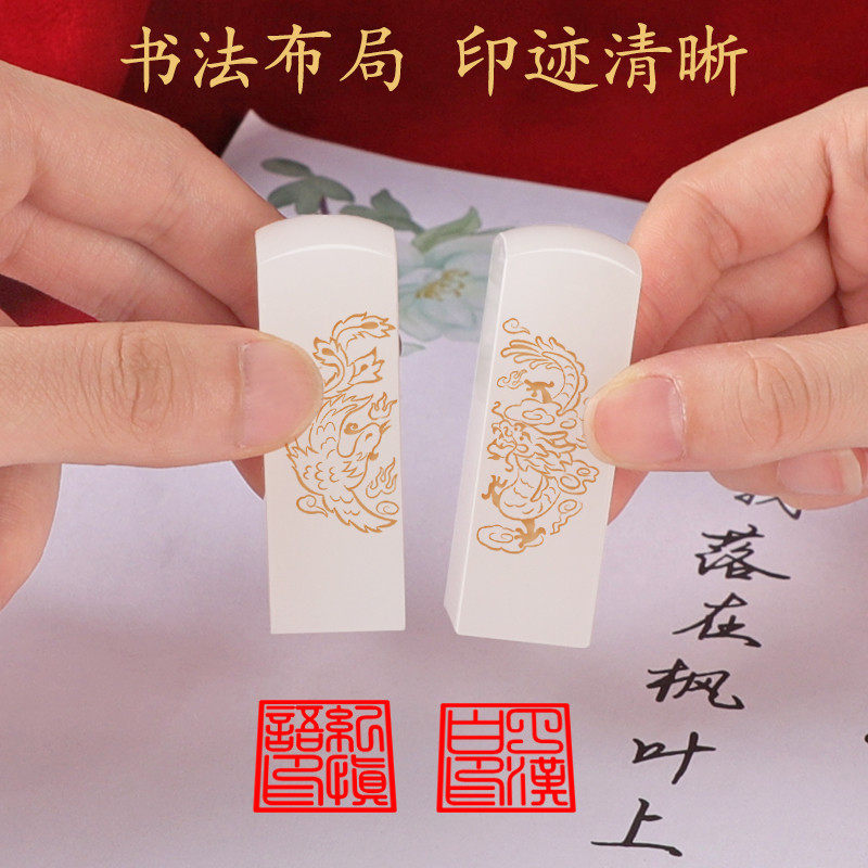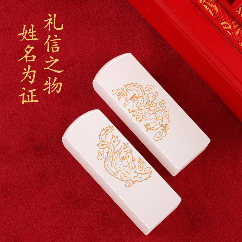 Wedding gift jade dragon and phoenix couples custom name stamp Valentine's Day gift for new couples girlfriends