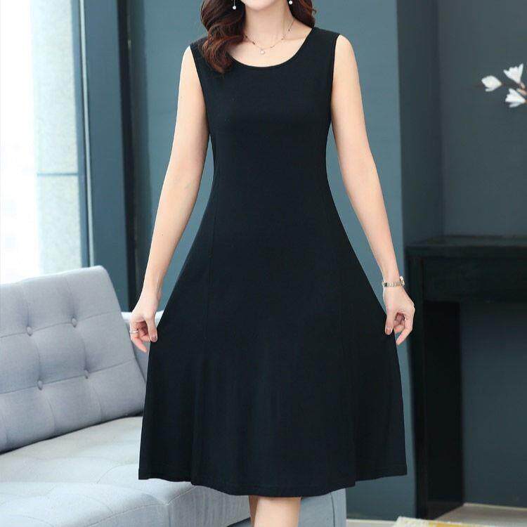 Modale Harness Vest Dress Undershirt External Wearing of Knee Ocean Dress Knitted Sling Dress Large Size Code Long Dress Summer