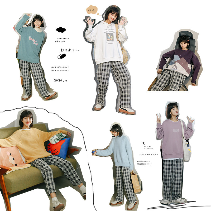 Loyal dog Xiao Hachi pear-shaped homemade-Pinyin song-summer wild plaid pants show thin casual pants