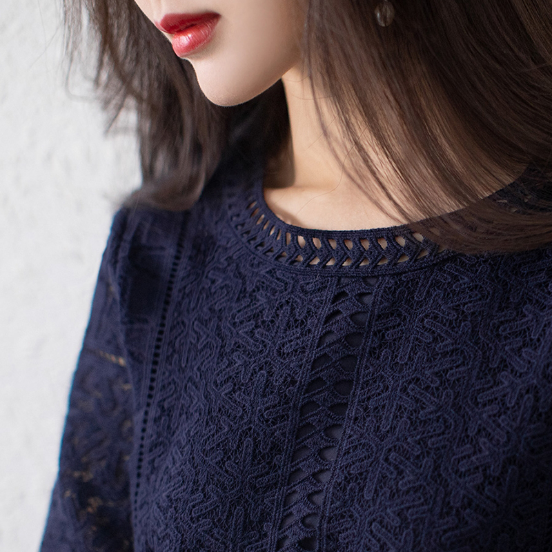 Hollow lace dress 2021 new spring high-end French niche temperament thin seven-point sleeve skirt women's summer