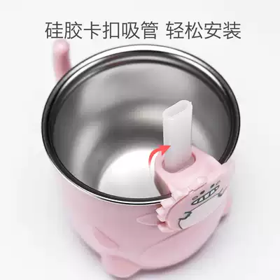 Baby sippy cup straight drink cup learning Milk Cup children drink cup stainless steel household anti-drop cute Cup