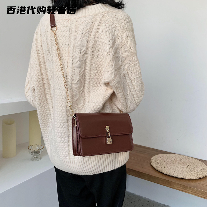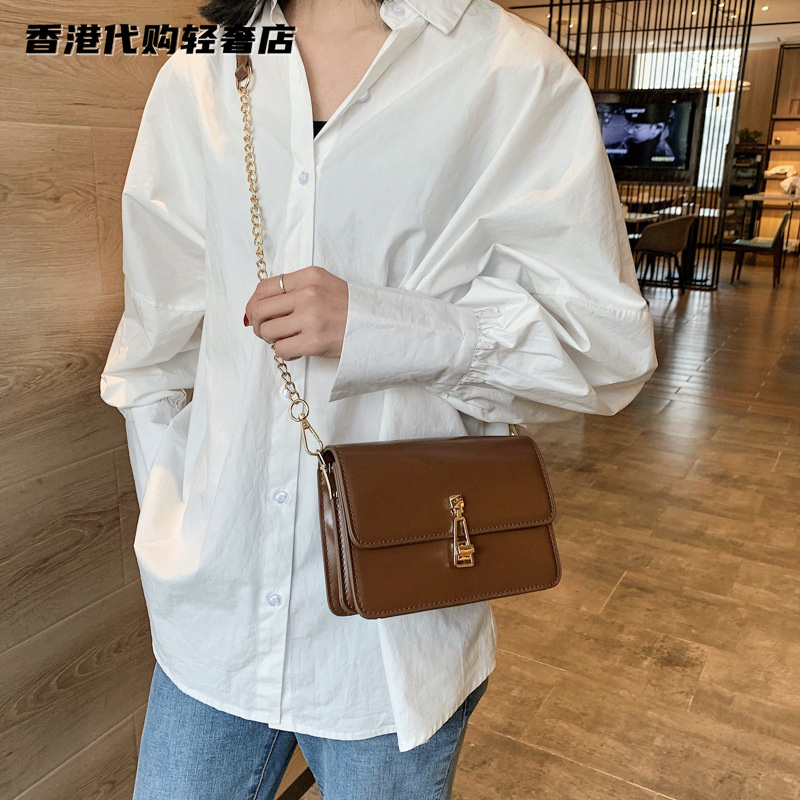 French official women's bag texture new genuine leather 100 lap small square bag advanced sense chain single shoulder inclined satchel bag