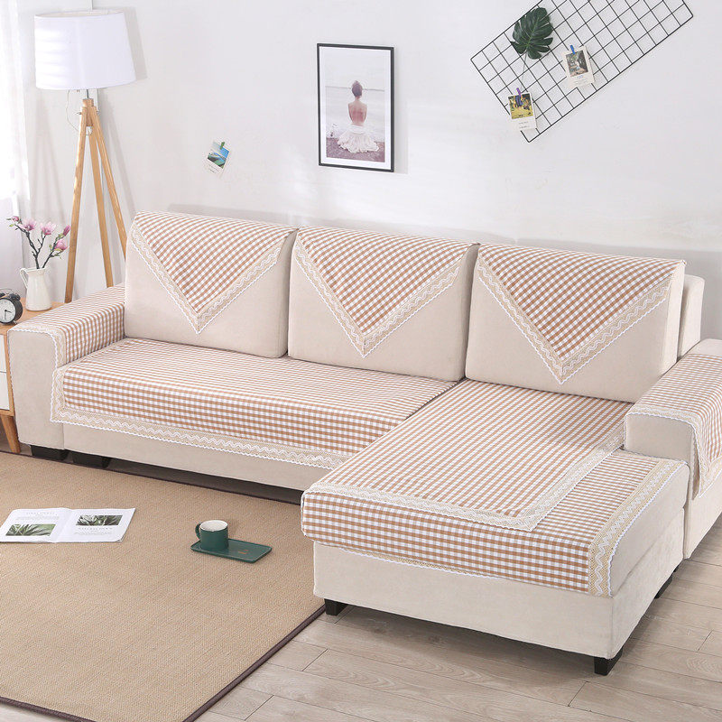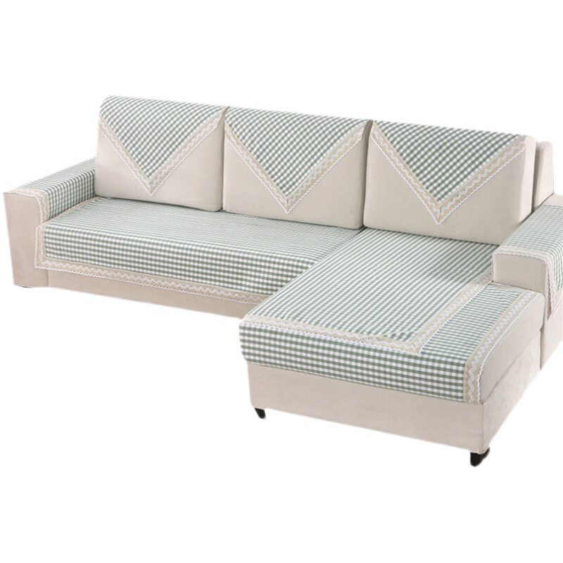 Pastoral Plaid Sofa Cushion 100% Cotton Old Coarse Sofa Towel Thicken Anti-slip Back Scarf Four Seasons Unaffordable Ball