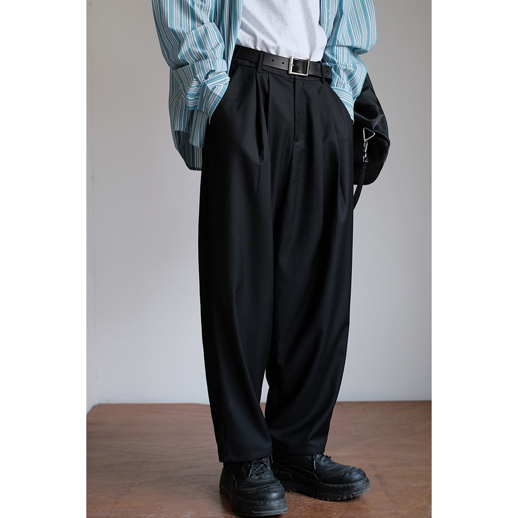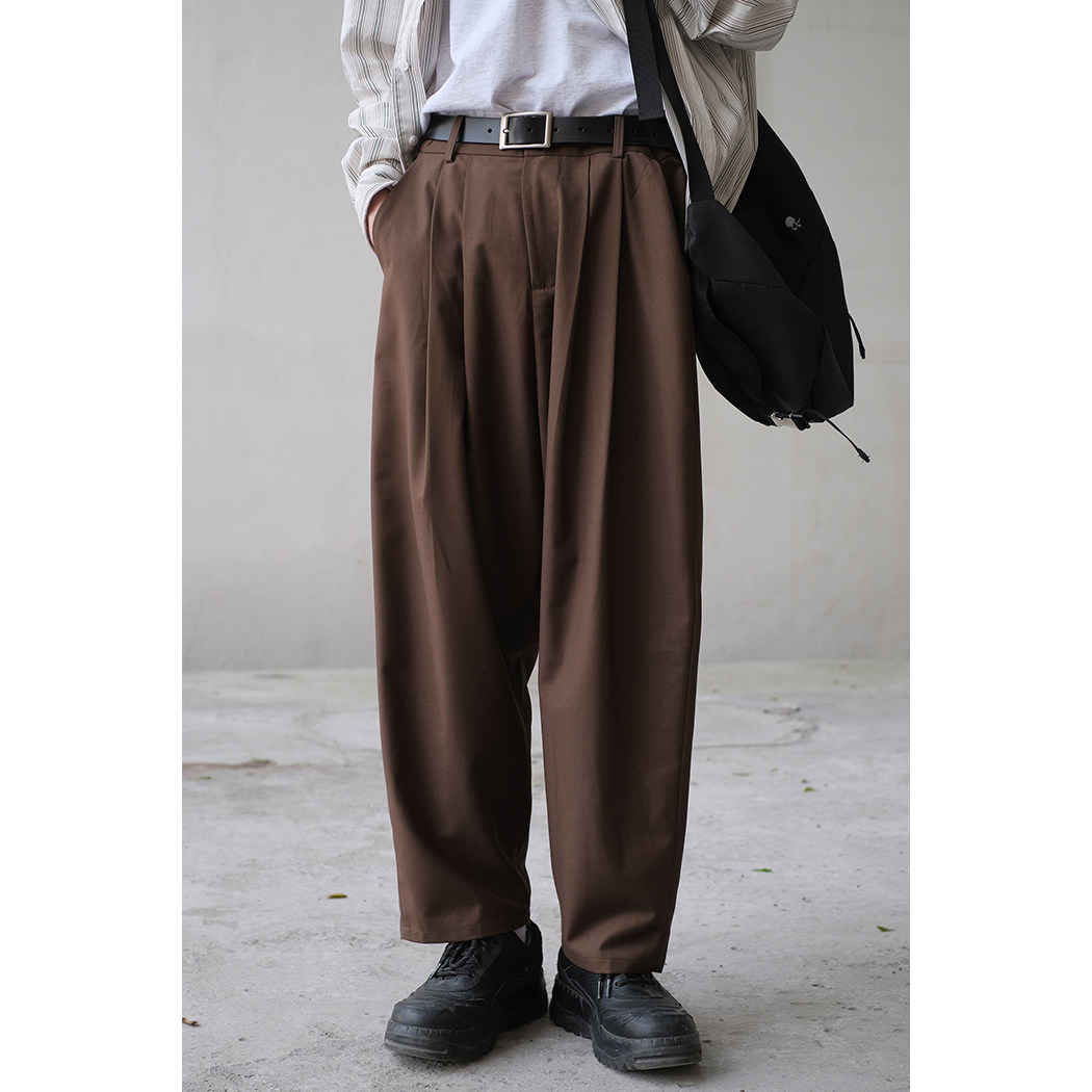 Homemade National Tide Pants Men's Fall Straight Barrel Loose 90% Pants Day Ensemble Retro Double Plexant Micro Wide Leg Casual Pants